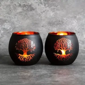 Das 2er Windlicht Set „Baum des Lebens“ überzeugt mit einer harmonischen Verbindung aus Symbolik, Ästhetik und hochwertigem Design. Die beiden Windlichter bestehen aus edlem Glas und sind in elegantem Schwarz gehalten – eine Farbe, die Tiefe und Ruhe ausstrahlt. Im Mittelpunkt steht das fein gearbeitete Baum-des-Lebens-Motiv, das kunstvoll auf das Glas aufgebracht wurde. Dieses kraftvolle Symbol steht für Wachstum, Verbundenheit und Beständigkeit – perfekt für eine stimmungsvolle Lichtquelle mit Bedeutung. Durch das schlichte Schwarz und das durchscheinende Glas entsteht bei Kerzenschein ein faszinierendes Spiel aus Licht und Schatten, das eine warme und beruhigende Atmosphäre schafft.
