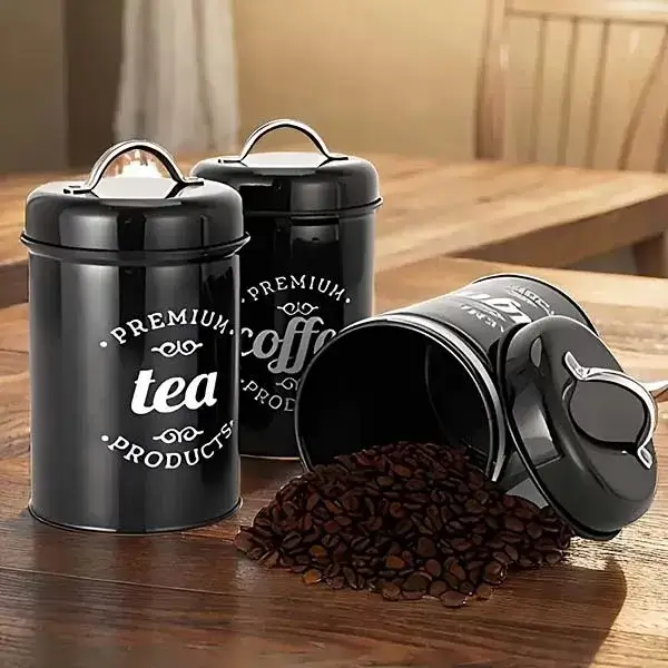Die stilvollen Metallbehälter zur Aufbewahrung Tee Kaffee Zucker vereinen Funktionalität mit einem charmanten Vintage-Look und machen Ihre Küche nicht nur organisierter, sondern auch optisch ansprechender. Die runden Dosen sind aus robustem Metall gefertigt und verfügen über einen praktischen Stülpdeckel, der den Inhalt zuverlässig schützt und gleichzeitig schnellen Zugriff ermöglicht. Ob für Kaffeebohnen, losen Tee oder feinen Zucker – mit diesen Dosen bewahren Sie Ihre Lebensmittel sicher und ordentlich auf. Durch ihr ansprechendes Design sind sie nicht nur praktisch, sondern auch ein dekoratives Highlight auf jeder Küchenzeile oder im Regal.