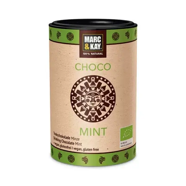Die Choco Mint Trinkschokolade verbindet fein abgestimmtes Bio-Trinkschokoladenpulver mit einer angenehm frischen Minznote. Diese besondere Kombination aus intensiver Schokolade und kühler Minze sorgt für ein ausgewogenes und zugleich erfrischendes Geschmackserlebnis. Die cremige Textur entfaltet sich besonders schön in warmer Milch oder pflanzlichen Alternativen. So entsteht mit der Choco Mint Trinkschokolade ein aromatisches Getränk, das klassische Schokoladennoten mit einer modernen, frischen Nuance verbindet und für genussvolle Momente im Alltag sorgt.