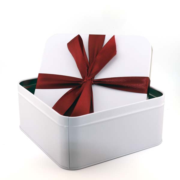 Mit der quadratischen Geschenkdose aus Blech ersparen Sie sich aufwändiges Verpacken: Einfach befüllen, Deckel schliessen – fertig ist ein hochwertig wirkendes Präsent. Die stabile Metallkonstruktion schützt den Inhalt zuverlässig und eignet sich hervorragend für Süsswaren, kleine Überraschungen oder Werbegeschenke. Durch das ansprechende Design wird die Dose selbst zum Bestandteil des Geschenks und sorgt für einen bleibenden Eindruck.
