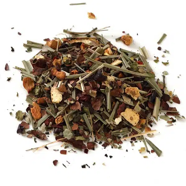 Der Kakao Orange Tee ist eine elegante Früchteteemischung, die mit ihrer raffinierten Verbindung aus vollmundigem Kakao und frischer Orange überrascht. Die samtige Kakaonote verleiht dem Tee Tiefe und Wärme, während Orangenschalen und Zitronengras für eine lebendige Frische sorgen. Apfelstücke runden die Komposition mit einer feinen Süsse ab und machen diesen Tee zu einem ausgewogenen Geschmackserlebnis, das sowohl beruhigt als auch belebt. Ob als Genussmoment am Abend oder als besondere Begleitung zum Dessert – der Kakao Orange Tee spricht die Sinne an und bringt Schokoladenliebhaberinnen ins Schwärmen.