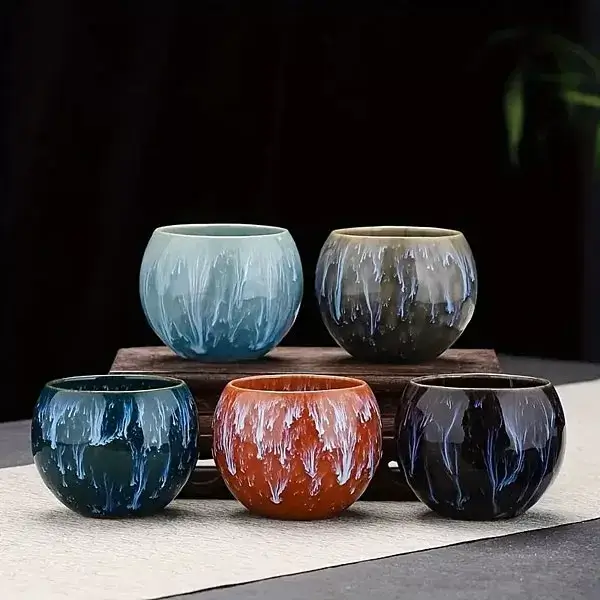 Dieses hochwertige Keramik Teetassen Set bringt fernöstliche Teekultur direkt in Ihr Zuhause. Jede Tasse ist ein kleines Kunstwerk für sich – inspiriert von der chinesischen Fünf-Elemente-Lehre und im aufwendigen Reactive Design gefertigt. Die im Ofen gebrannten Teetassen überzeugen durch ihre individuelle Glasur, welche bei jedem Stück ein einzigartiges Farbspiel erzeugt. Die Form der Tassen liegt angenehm in der Hand, wodurch jeder Teemoment zu einem sinnlichen Genuss wird. Ob für Schwarztee, Grüntee oder Kräuterteemischungen – dieses Keramik Teetassen Set macht jeden Schluck zu einem besonderen Erlebnis.