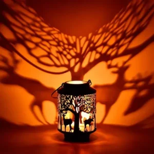 Das stimmungsvolle Design der Laterne Waldtiere überzeugt durch viele liebevolle Details: Hirsche, Füchse und Vögel erscheinen im Schimmer des Kerzenlichts lebendig und bewegen sich scheinbar durch einen goldenen Wald. Die Aussenfläche der Laterne ist in edlem Schwarz gehalten, was das goldene Innenleben besonders schön zur Geltung bringt. Durch die ausgestanzten Motive entsteht ein faszinierendes Licht- und Schattenspiel, das an eine ruhige Waldnacht erinnert.