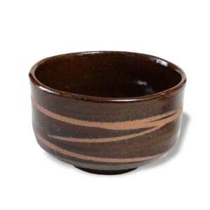 Matcha-Schale (Chawan): Eine japanische Keramikschale, speziell für die Zubereitung von Matcha-Tee entworfen. Die Schale hat einen Durchmesser von 12 cm und eine Höhe von 7 cm, ideal für das Aufschlagen von Matcha. Erhältlich in einer eleganten, tiefe braune Farbe mit einer glatten, glasierten Oberfläche.