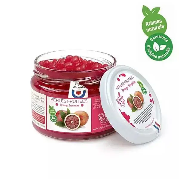Gefertigt werden die Fruchtperlen Orangen Bubble Tea aus hochwertigen Zutaten mit Fokus auf Reinheit und Natürlichkeit. Es werden ausschliesslich natürliche Aromen und französischer Sirup verwendet, wodurch künstliche Farb- und Zusatzstoffe bewusst vermieden werden. Das Ergebnis ist ein klarer, authentischer Orangengeschmack mit einer angenehmen Süsse und fruchtigen Frische. Dank der intensiven Farbgebung und der ansprechenden Konsistenz sind die Orangenperlen nicht nur geschmacklich, sondern auch optisch ein Highlight in jedem Getränk.