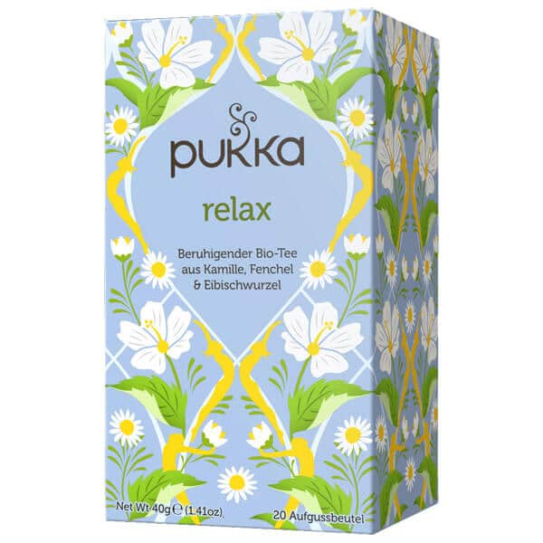 Die Entspannung mit dem Pukka Bio Relax Tee, einer einzigartigen Mischung aus beruhigender Eibischwurzel, sanftem Fenchel und zarter Kamille.