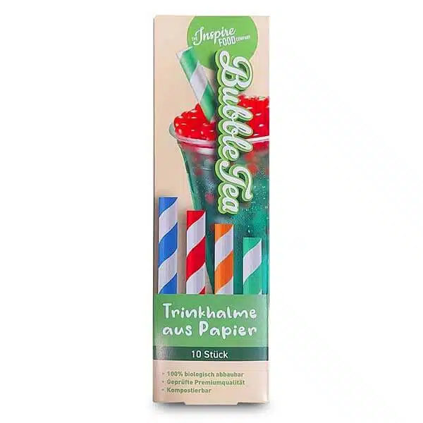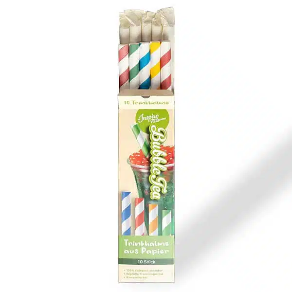 Wenn Sie umweltfreundliche Alternativen für Ihre Getränke suchen, sollten Sie Strohhalme aus Papier kaufen, die speziell für Bubble Tea geeignet sind. Diese Strohhalme überzeugen durch ihre Stabilität und eine grössere Öffnung, die ideal ist, um die beliebten Tapioka-Perlen problemlos zu geniessen. Hergestellt aus hochwertigem Papier, bleiben sie auch bei längerer Nutzung stabil und formfest.