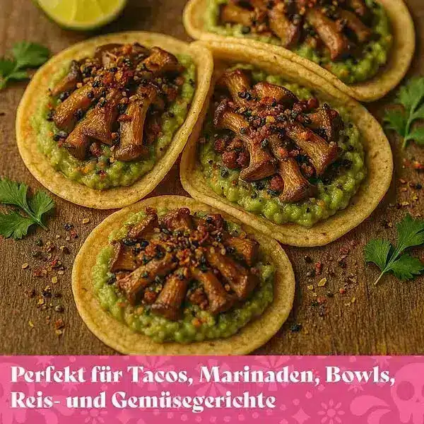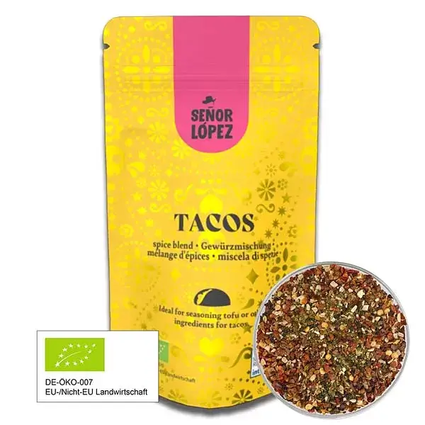 Darüber hinaus ist die Mischung vielseitig einsetzbar. Sie eignet sich nicht nur für Tacos, sondern auch hervorragend als Würze für Marinaden, Salsas, Bowls oder Reis- und Gemüsegerichte. Wenn Sie Taco Gewürzmischung kaufen, profitieren Sie zudem von 100 % biologischen Zutaten – ganz ohne künstliche Zusätze oder Geschmacksverstärker. Die wiederverschliessbare Verpackung mit Clip-Verschluss bewahrt die Aromen optimal, während die vollständig recycelbare Hülle frei von Aluminiumfolie, Lösungsmitteln und BPA.
