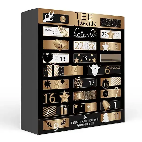 Ein edler Tee Adventskalender Weihnachten, der mit hochwertigem Tee, stilvollem Design und festlichem Charme überzeugt. Er vereint weihnachtlichen Tee-Genuss mit ästhetischem Anspruch und bietet mit seinen 24 feinen Kreationen eine elegante Begleitung durch den Advent.