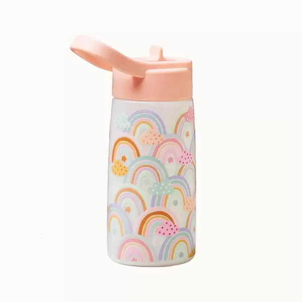Die Trinkflasche für Kinder mit fröhlichem Regenbogenmotiv überzeugt durch ihr kindgerechtes Design und ihre praktische Grösse von 350 ml. Mit einem Durchmesser von 70 mm und einer Höhe von 180 mm liegt sie angenehm in kleinen Händen und passt ideal in Rucksäcke oder Znüniboxen. Besonders praktisch ist die mitgelieferte Reinigungsbürste, die eine einfache Pflege ermöglicht und die Flasche im Alltag zuverlässig einsatzbereit hält.