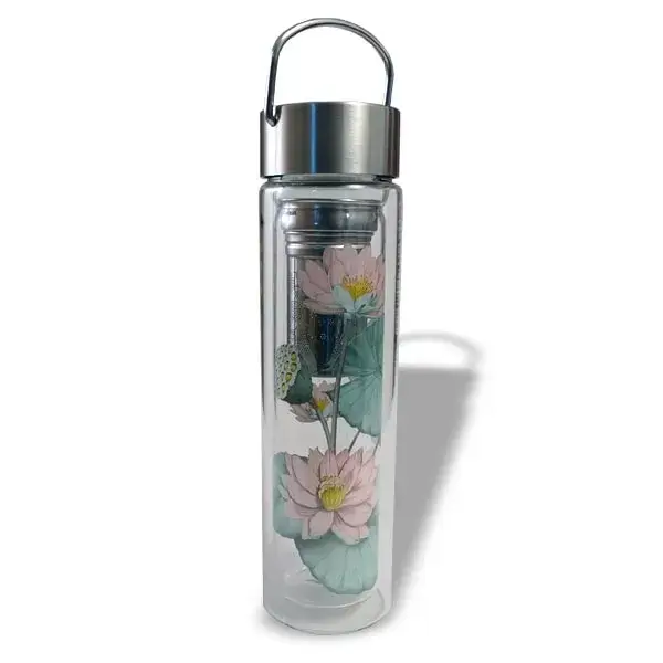 Stilvolle Trinkflasche zum Mitnehmen mit Sieb und Neoprenhülle “Fiore”